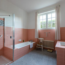 La chambre Dinan, plein sud a vue sur le jardin. Elle dispose de 2 lits simples (90 x 190) ou d'un lit double. Sa salle de bains attenante est équipée d'une baignoire.
